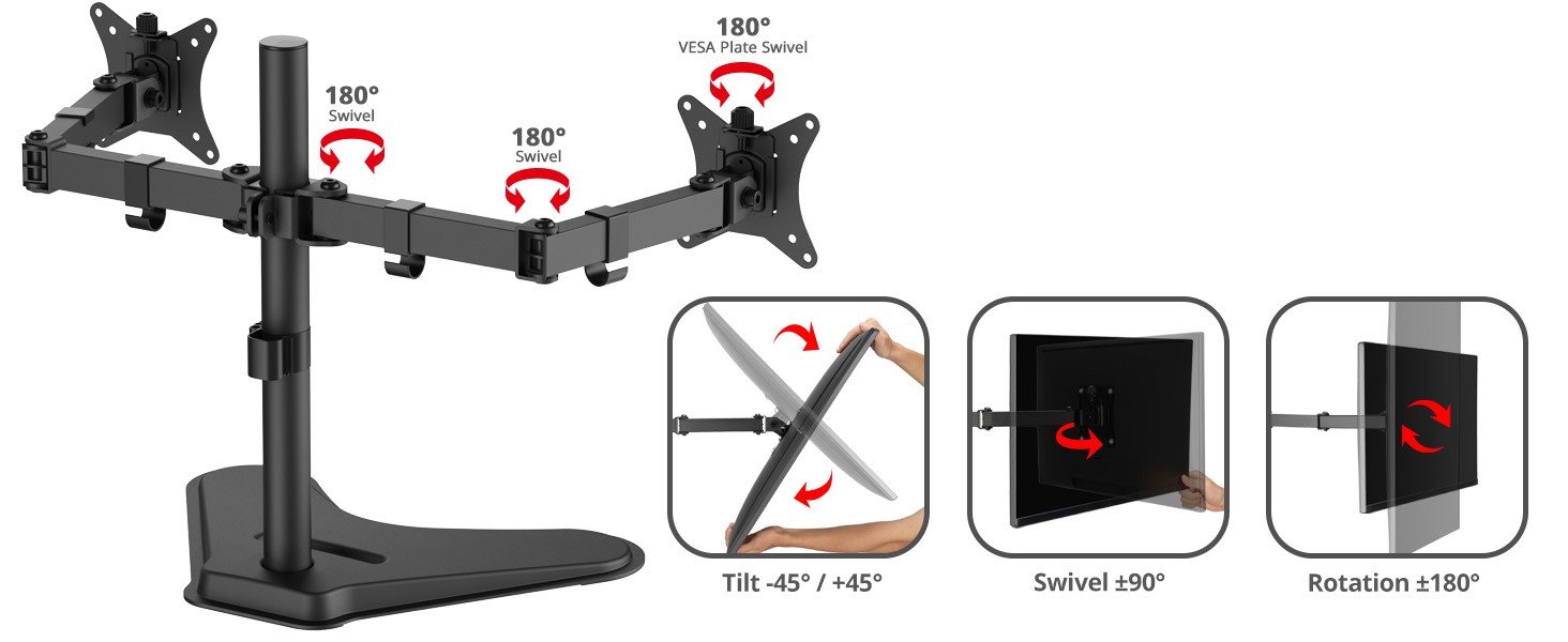 - Articulated Freestanding Dual Monitor Desk Stand - 13"-27"