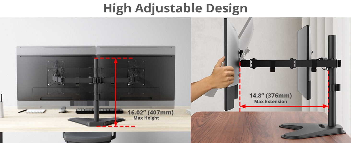 Lift the arm 16.02 inches (407mm) to find the perfect and ergonomic viewing height that relieves your body strain