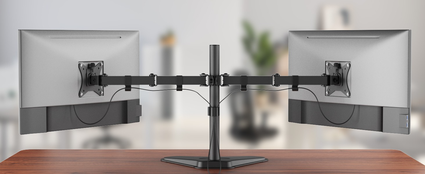 Articulated Freestanding Dual Monitor Desk Stand - independently tilt, swivel, rotate and extend two monitors, Fits 13" to 32" monitors, Max Load 19.8 lbs(each), VESA Plate 75x75mm/100x100mm, Cable Management, Detachable VESA Plate