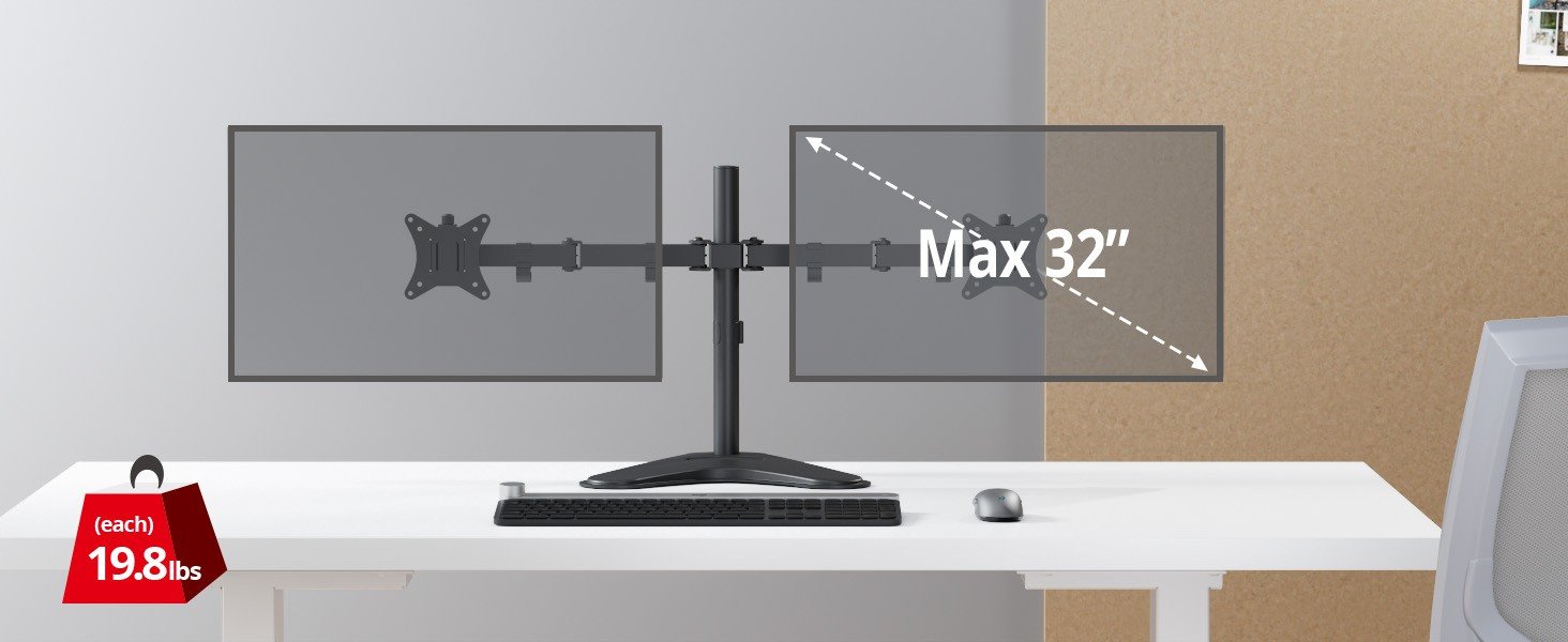 - Hold your monitor max 19.8 Ibs ( 9kgs) each